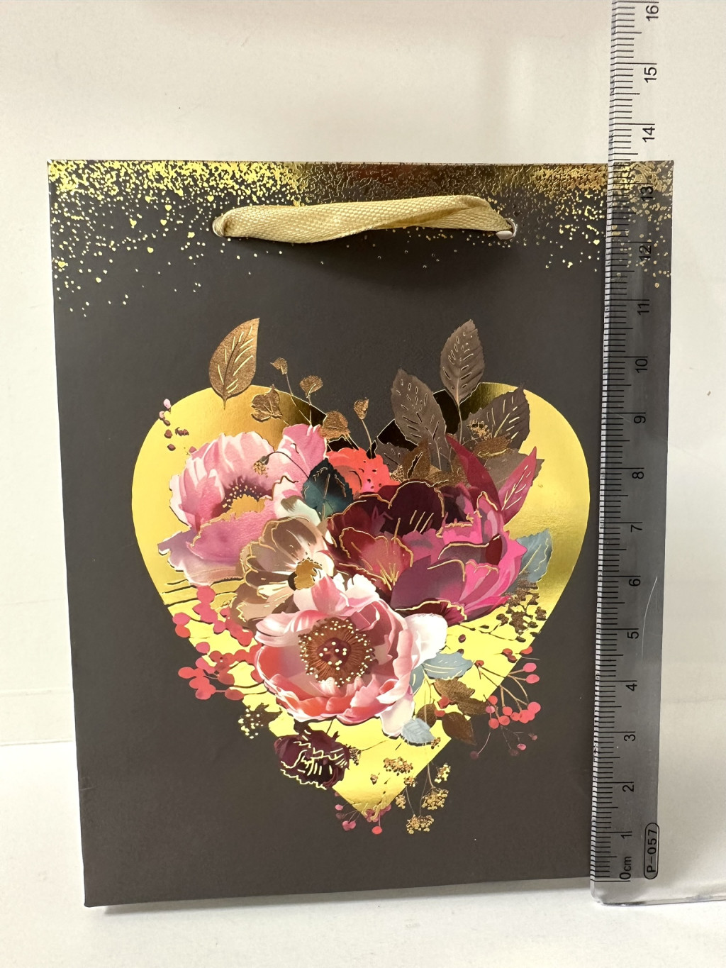 Aranyszív – Kisméretű ajándéktáska virágos motívummal
