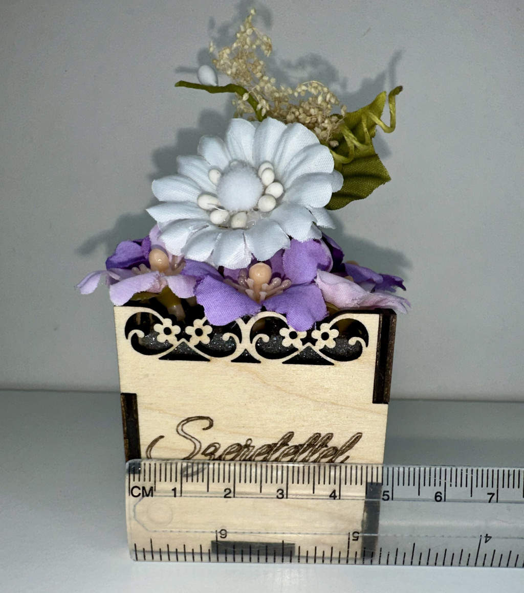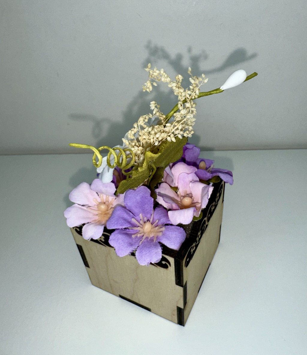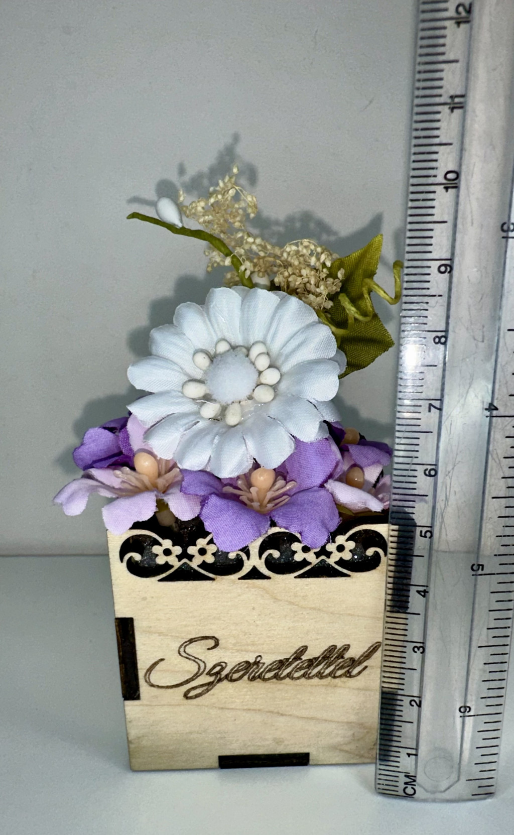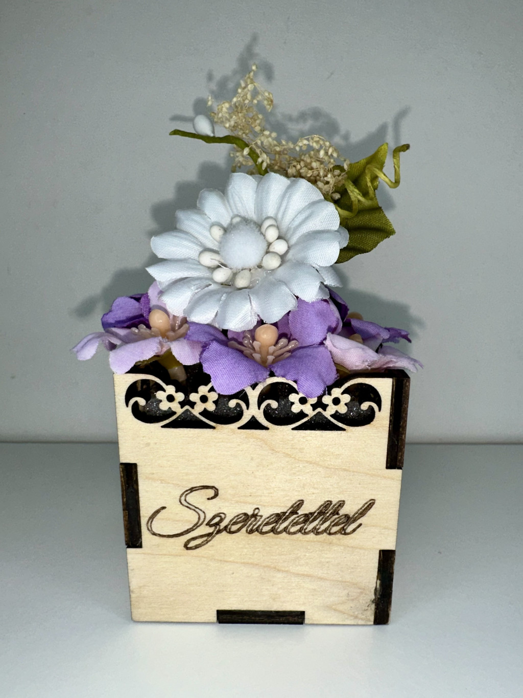 Ez a fehér és lila árnyalatú virágbox gravírozott „Szeretettel” feliratú fa díszdobozban érkezik. Letisztult színvilága miatt elegáns választás olyan alkalmakra, amikor nem a harsány, hanem a kifinomult stílus a cél.