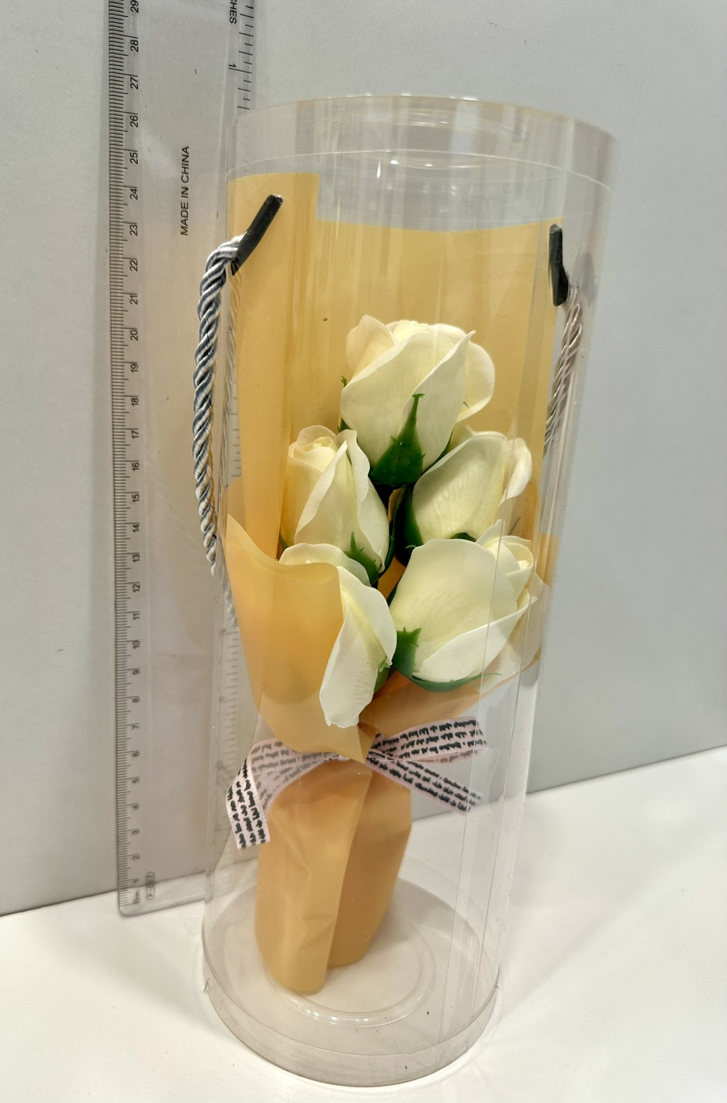Ez a krém színű szappanrózsa csokor az elegancia és letisztultság tökéletes kombinációja. Finom árnyalatai nyugalmat és harmóniát sugároznak, így ideális választás azoknak, akik a visszafogott, mégis különleges ajándékokat szeretik.