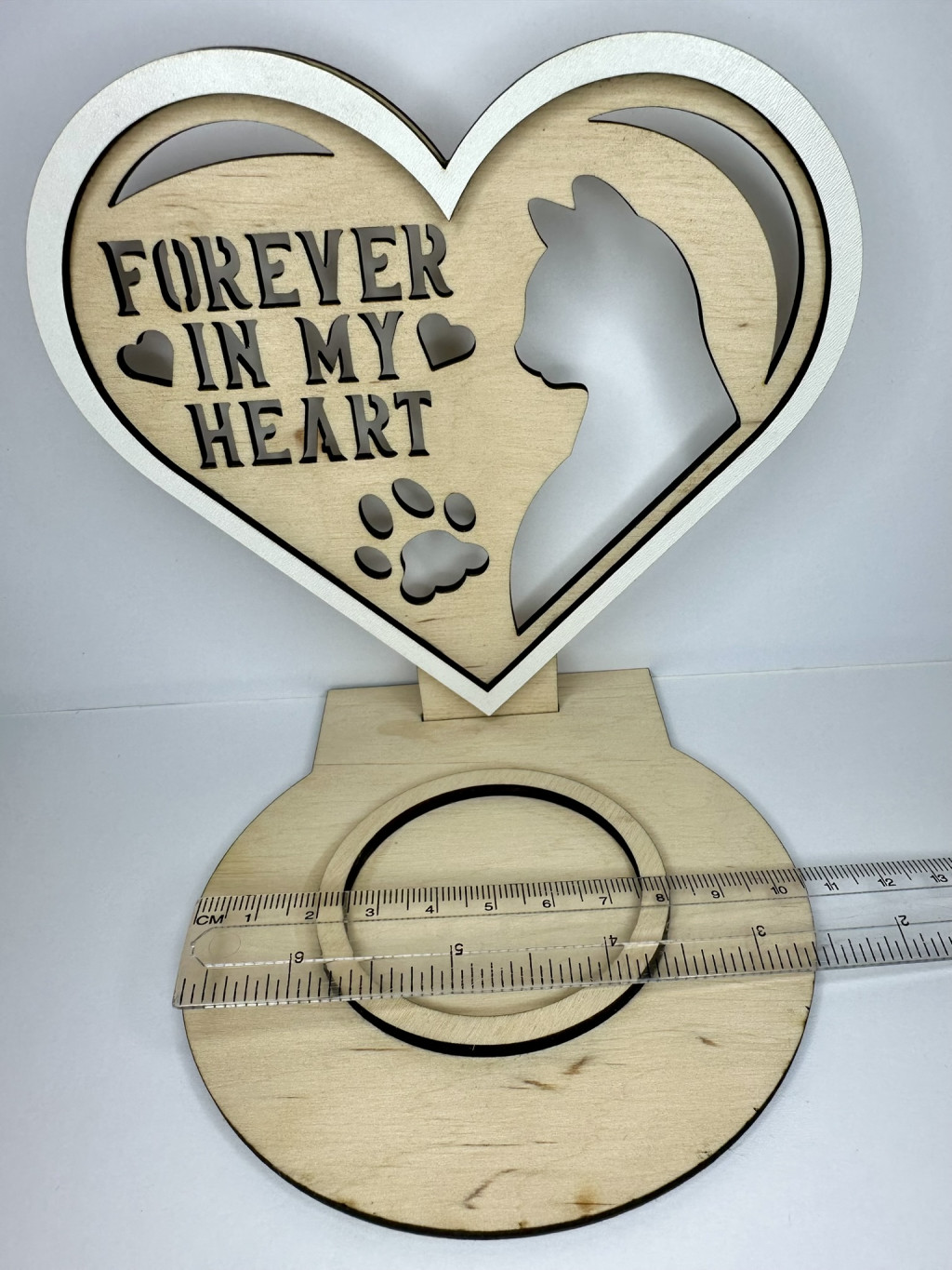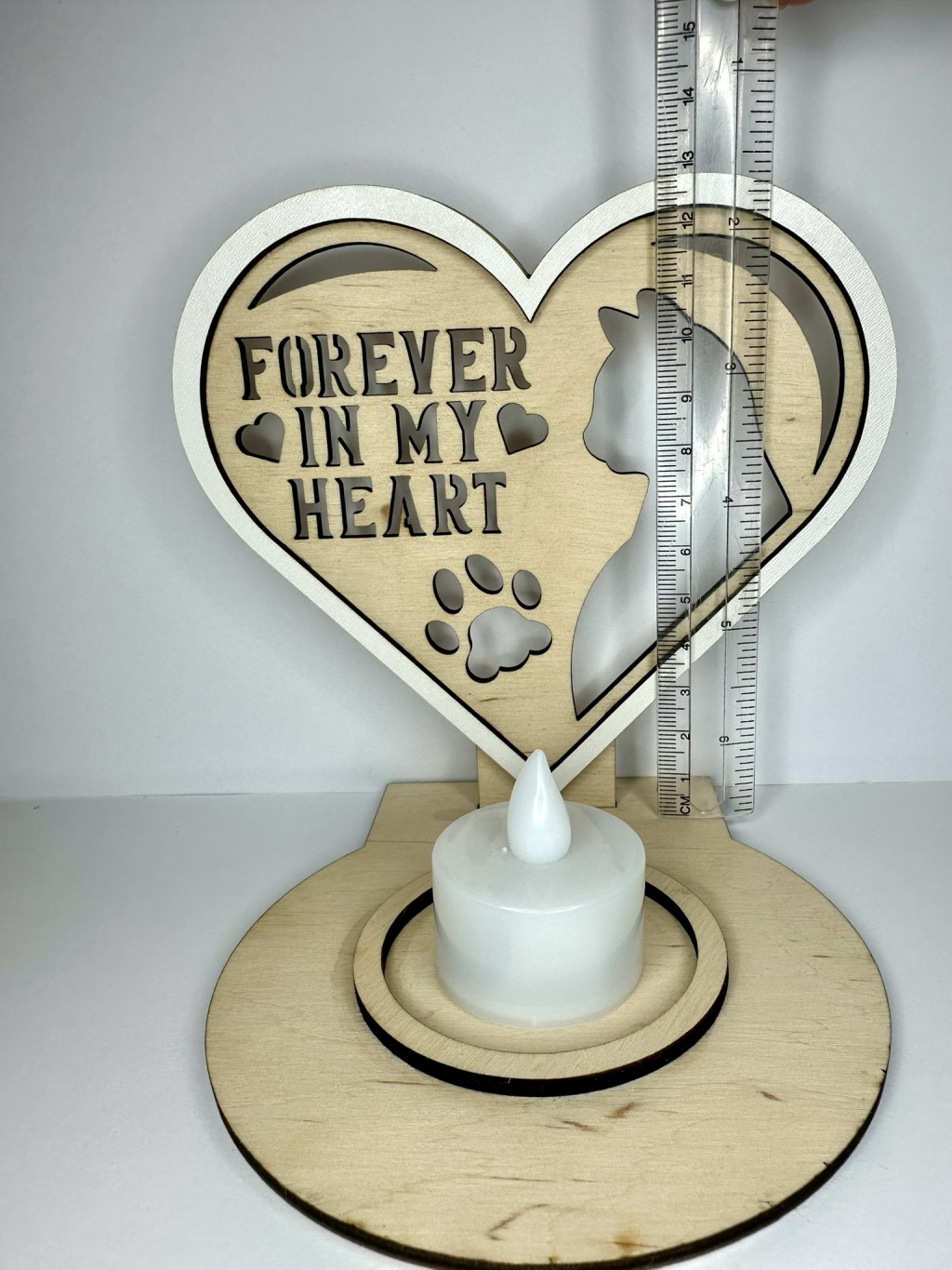 Őrizd meg szeretett cicád emlékét egy különleges, meghitt mécsestartóval. A „Forever in My Heart – Cica emlék mécsestartó” lézervágott fa szív alakú kerete és a cicás sziluettje szimbolikusan kifejezi az örök szeretetet és összetartozást. A mellékelt LED mécses meleg, békés fényt áraszt, így nemcsak biztonságos, hanem méltó módja is annak, hogy megemlékezz kedvencedről.