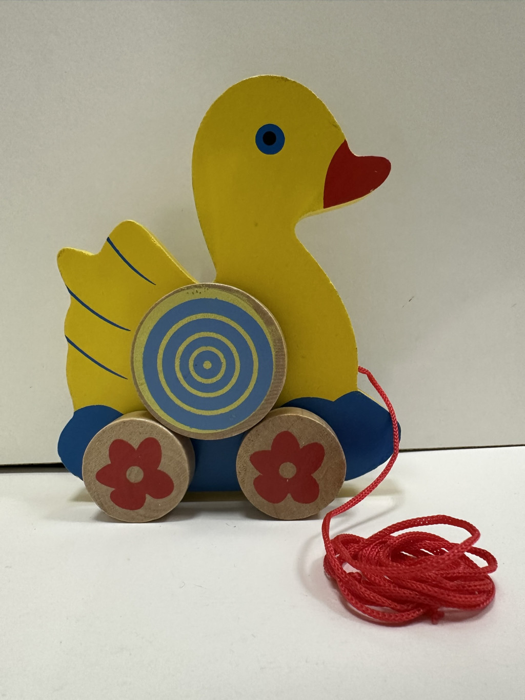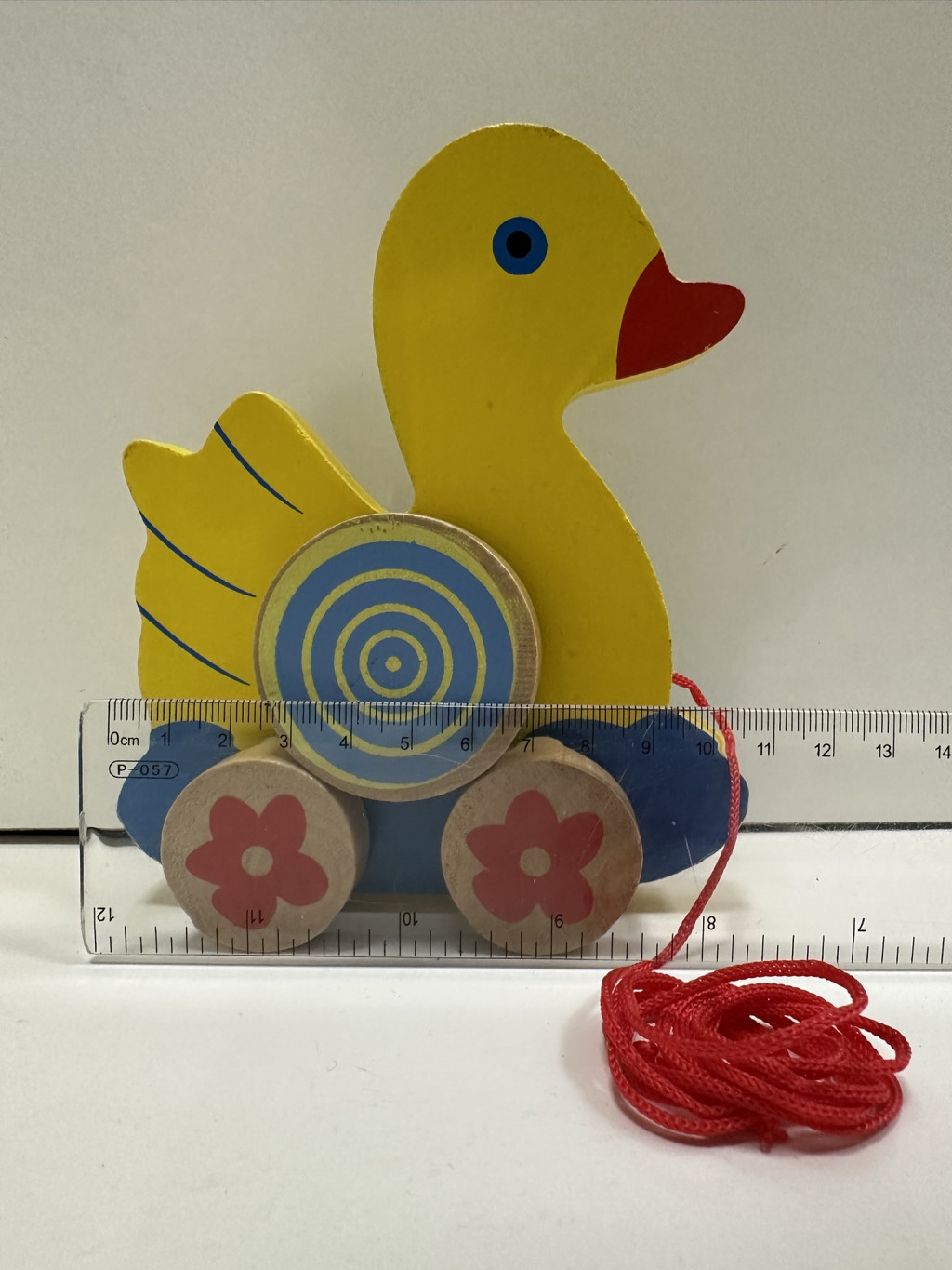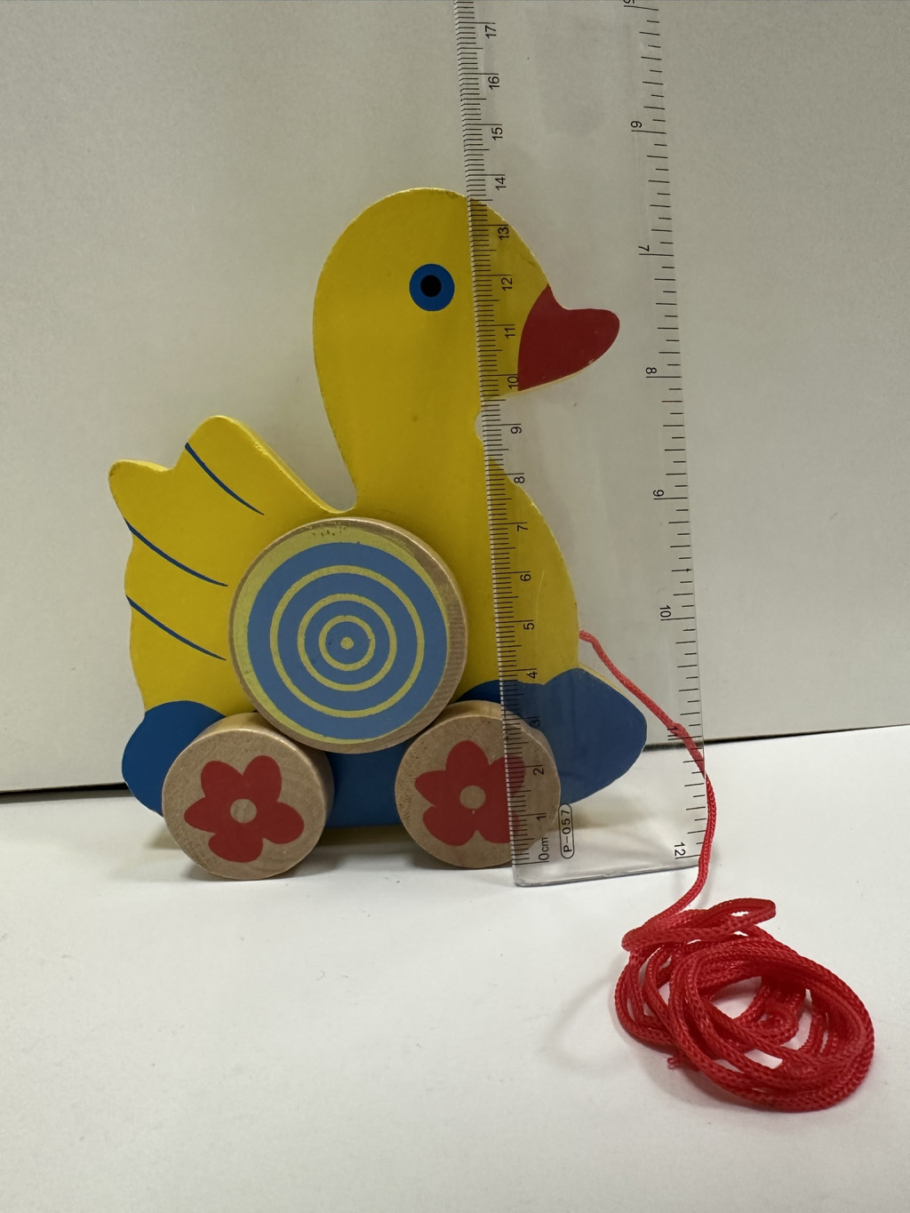 Ez az aranyos, húzható kis kacsa biztosan belopja magát a gyerekek szívébe! A sárga színű, piros csőrű kiskacsa kedves megjelenésével és guruló fakerekeivel ideális kísérő a lakásban, a kertben vagy akár az óvodába menet. A piros virágmintás kerekek simán gördülnek, a piros zsinórt pedig kis kezek is könnyedén tudják húzni.