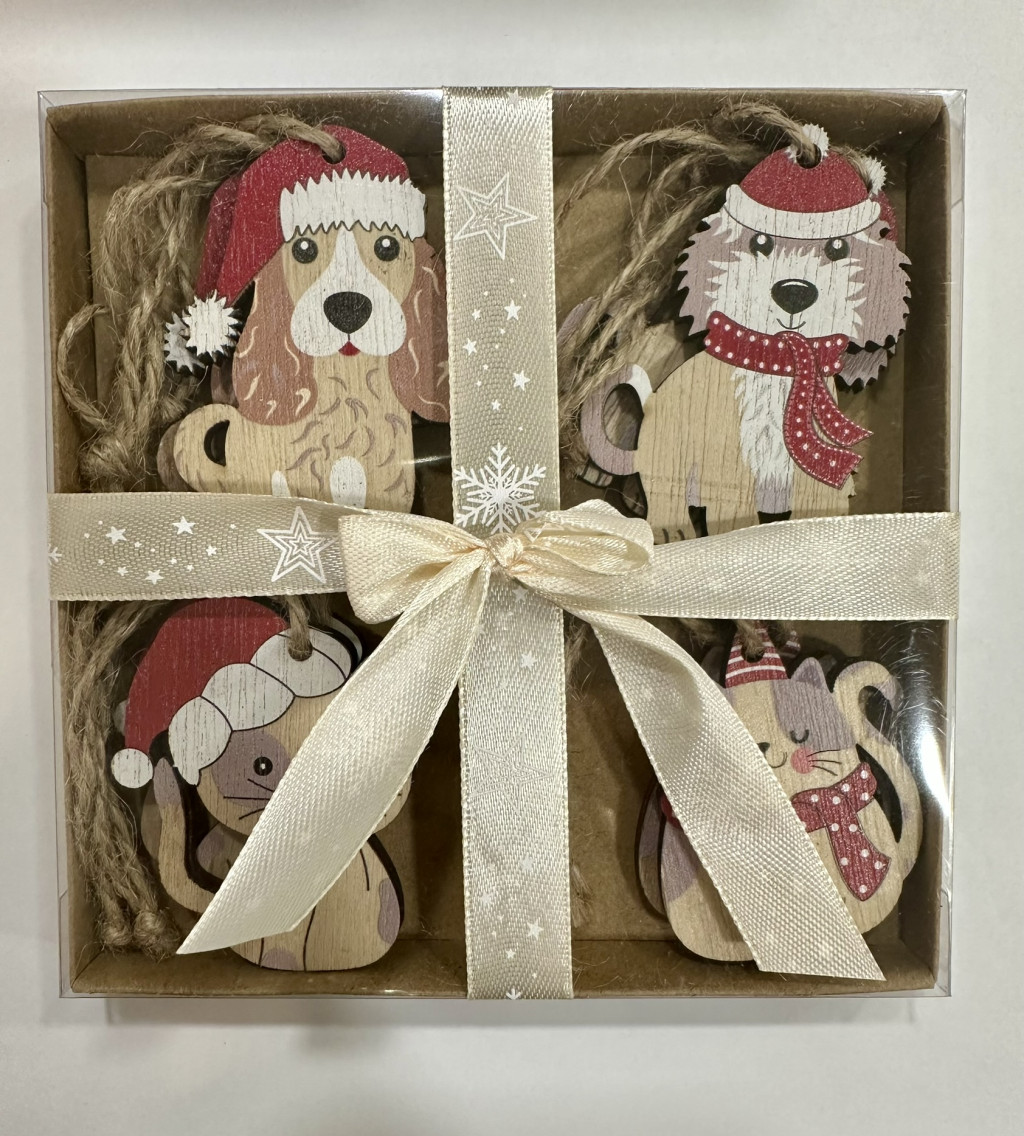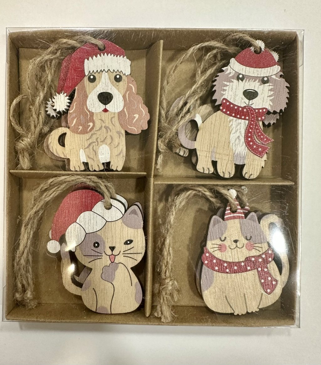 Ez a kedves karácsonyi kutyás és cicás fa dekor szett nyolc darab bájos díszt tartalmaz. A dobozban négy különböző minta található és mindegyikből két darab, így egy igazán gazdag és változatos dekor csomagot kapsz.