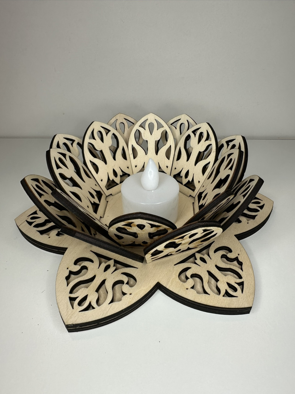 A Lézervágott Lotus – Fény a nyugalomban mécsestartó az otthoni harmónia és meghittség szimbóluma.