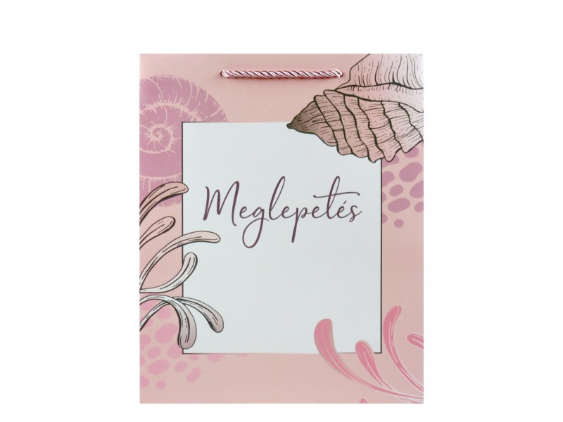 Tedd még különlegesebbé az ajándékozás pillanatát ezzel az elegáns „Meglepetés” feliratú rózsaszín ajándéktasakkal!