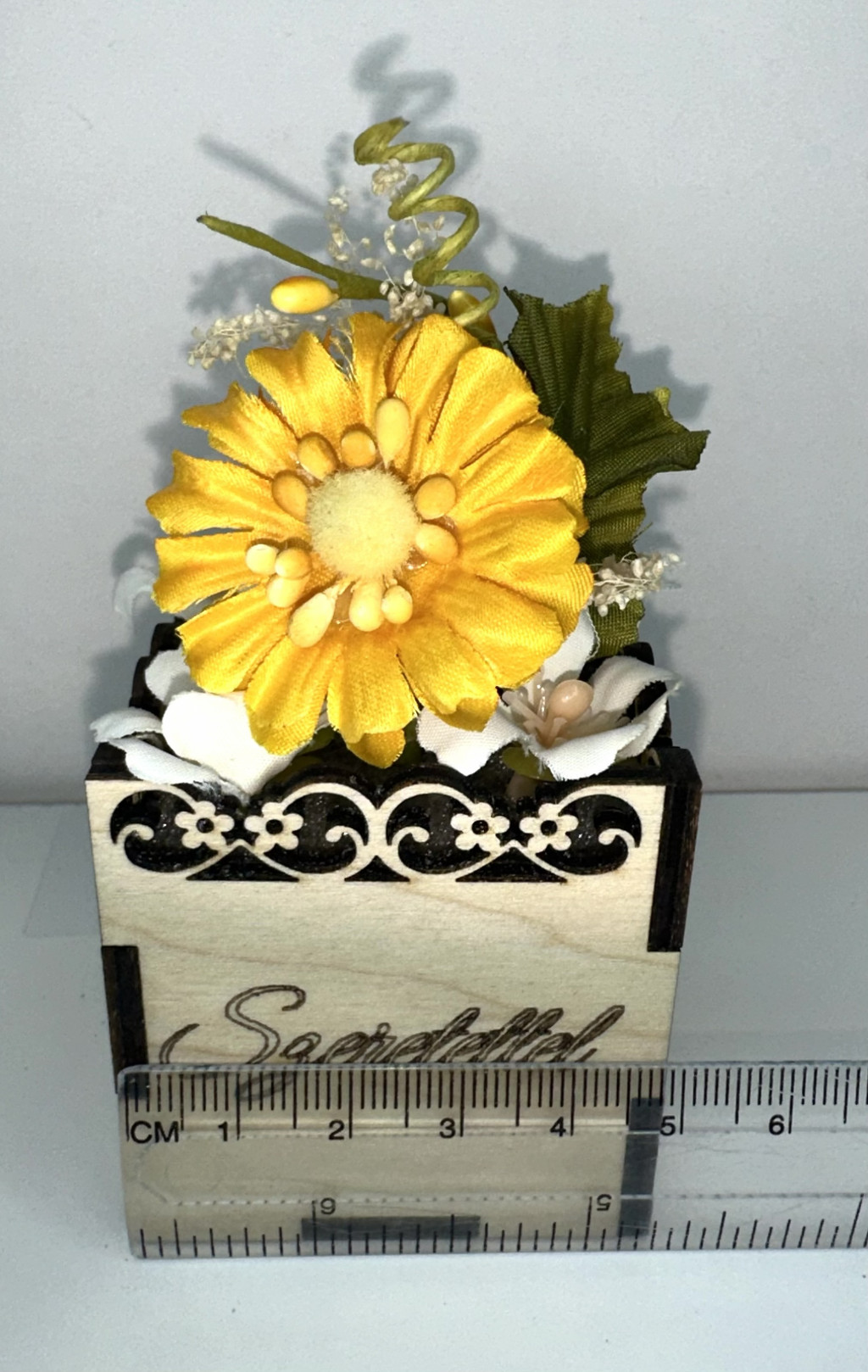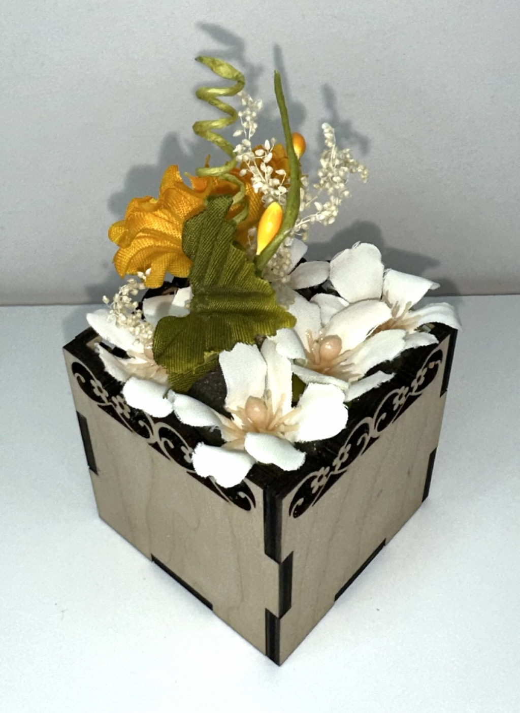 A sárga virág a boldogság, az optimizmus és a melegség jelképe. Tartós kivitelének köszönhetően nem hervad el, nem igényel gondozást, mégis egész évben friss hangulatot teremt.