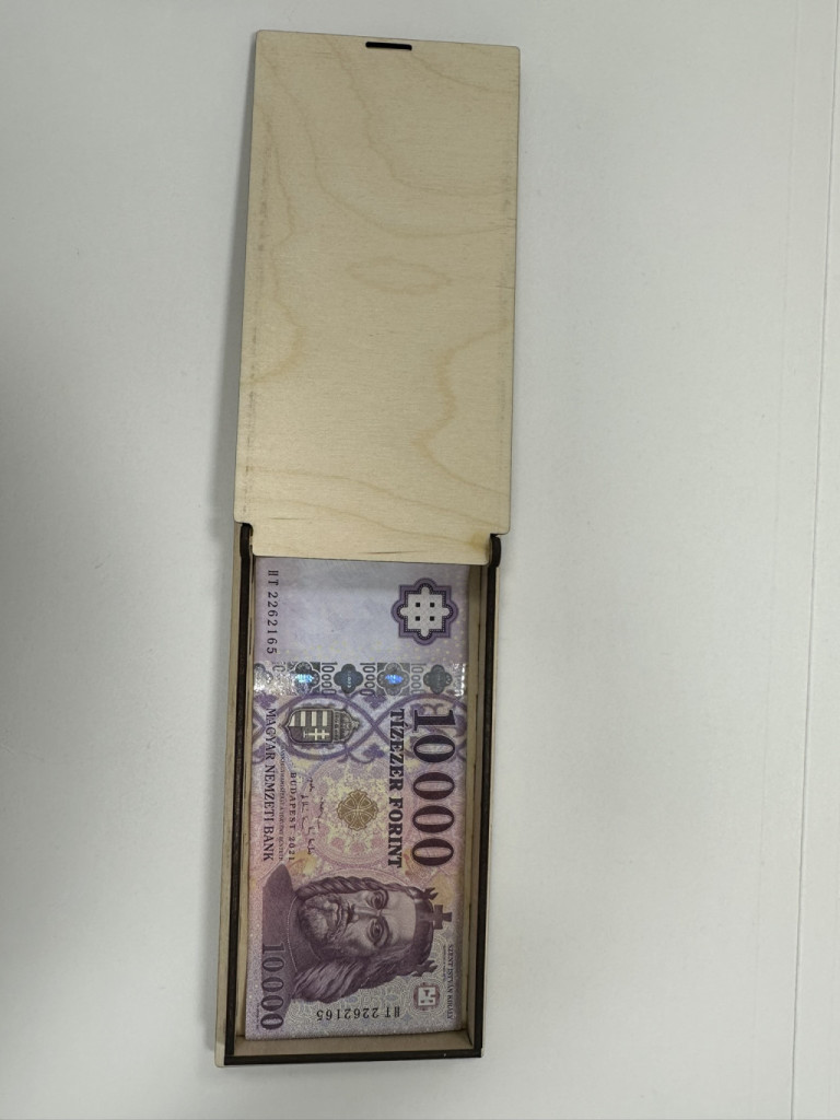A természetes fa anyag és a precíz gravírozás különleges megjelenést ad, így a pénzátadó nemcsak csomagolás, hanem egy apró emlék is marad az ajándékozott számára.