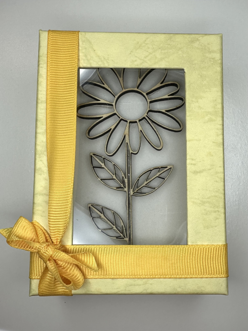Az Örök Napraforgó virágdoboz – napsárga díszdobozban a napraforgó derűs, optimista jelentését hozza el egy meleg, élénk színvilágban. A lézervágott fa napraforgó motívum részletgazdag, mégis letisztult, a sárga doboz pedig azonnal mosolyt csal az arcokra.
