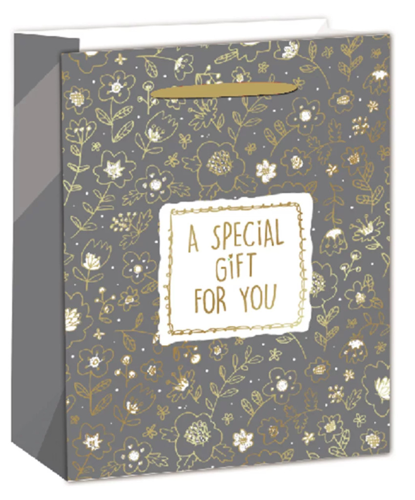 PAPÍRTASAK MATT, ARANY FÉNYES NYOMÁSSAL, VIRÁG MINTÁS, A SPECIAL GIFT FOR YOU FELIRATTAL
