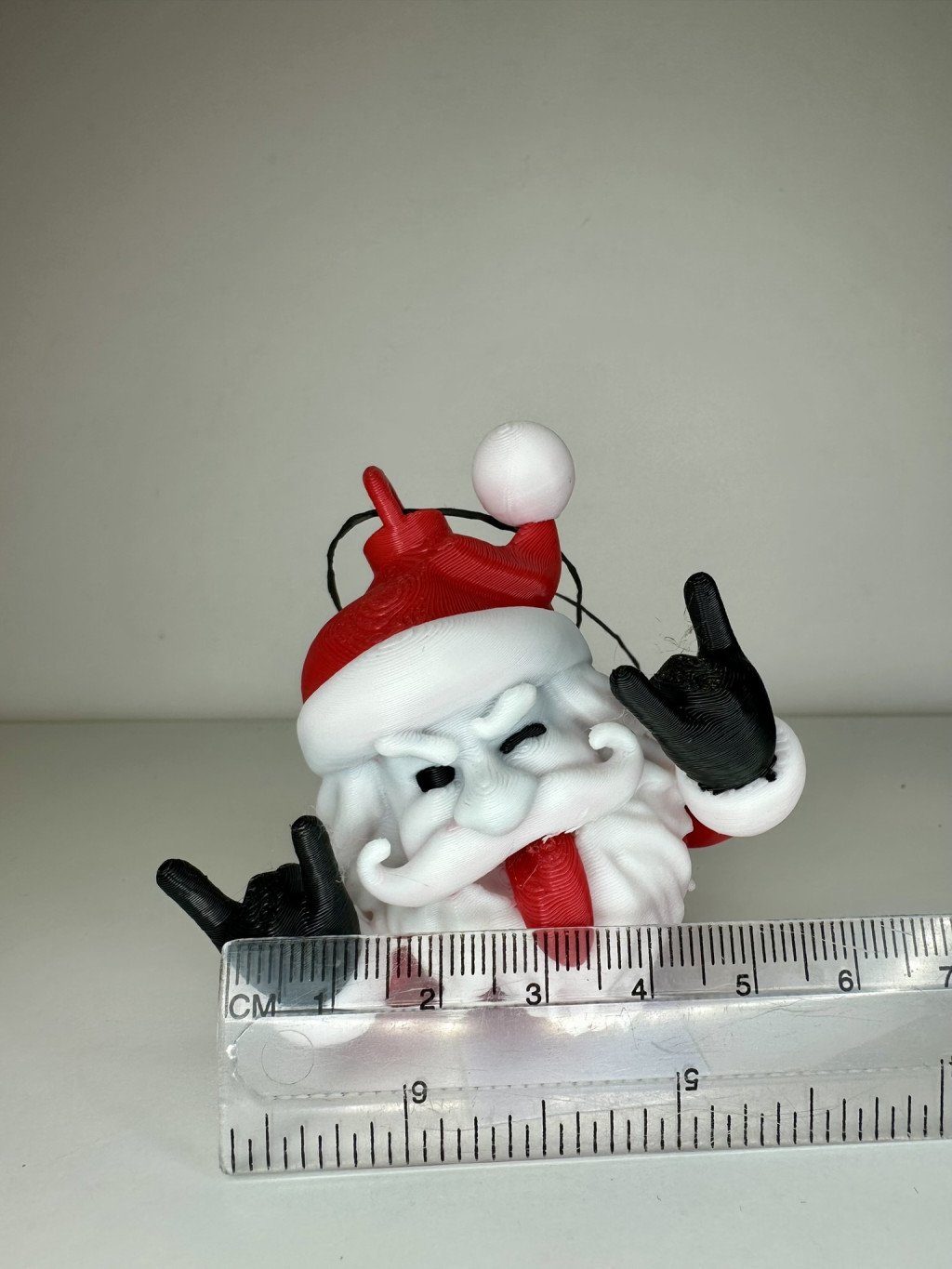 Fehér szakáll, piros sapka, fekete kesztyű és ikonikus “rock on” kézmozdulat – mindezt 3D nyomtatással, részletgazdag kidolgozással.