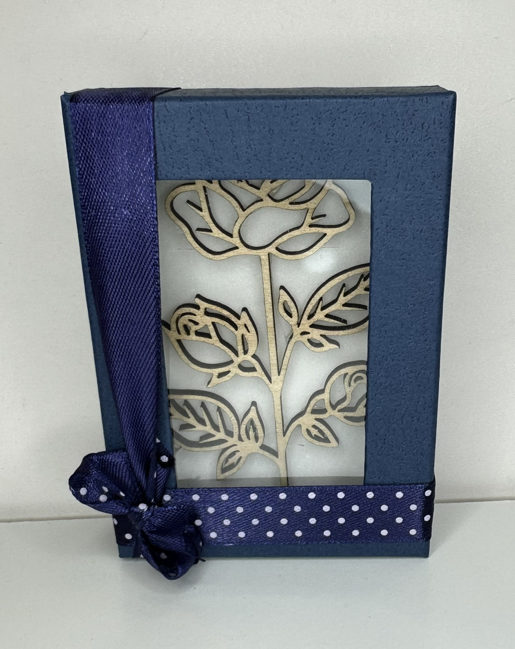 Ez a finoman lézervágott fa rózsa elegáns, szalaggal díszített dobozban kap helyet, így már az első pillanatban különleges élményt ad – és évekkel később is ugyanazt jelenti.