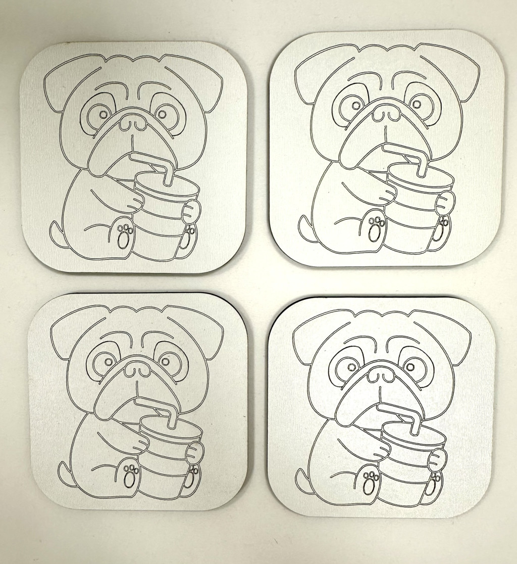 Ez a lézervágott poháralátét szett négy darab különleges, francia bulldog mintás alátétet tartalmaz, melyeket precízen gravíroztunk, hogy minden egyes vonás mosolyt csaljon az arcodra.
