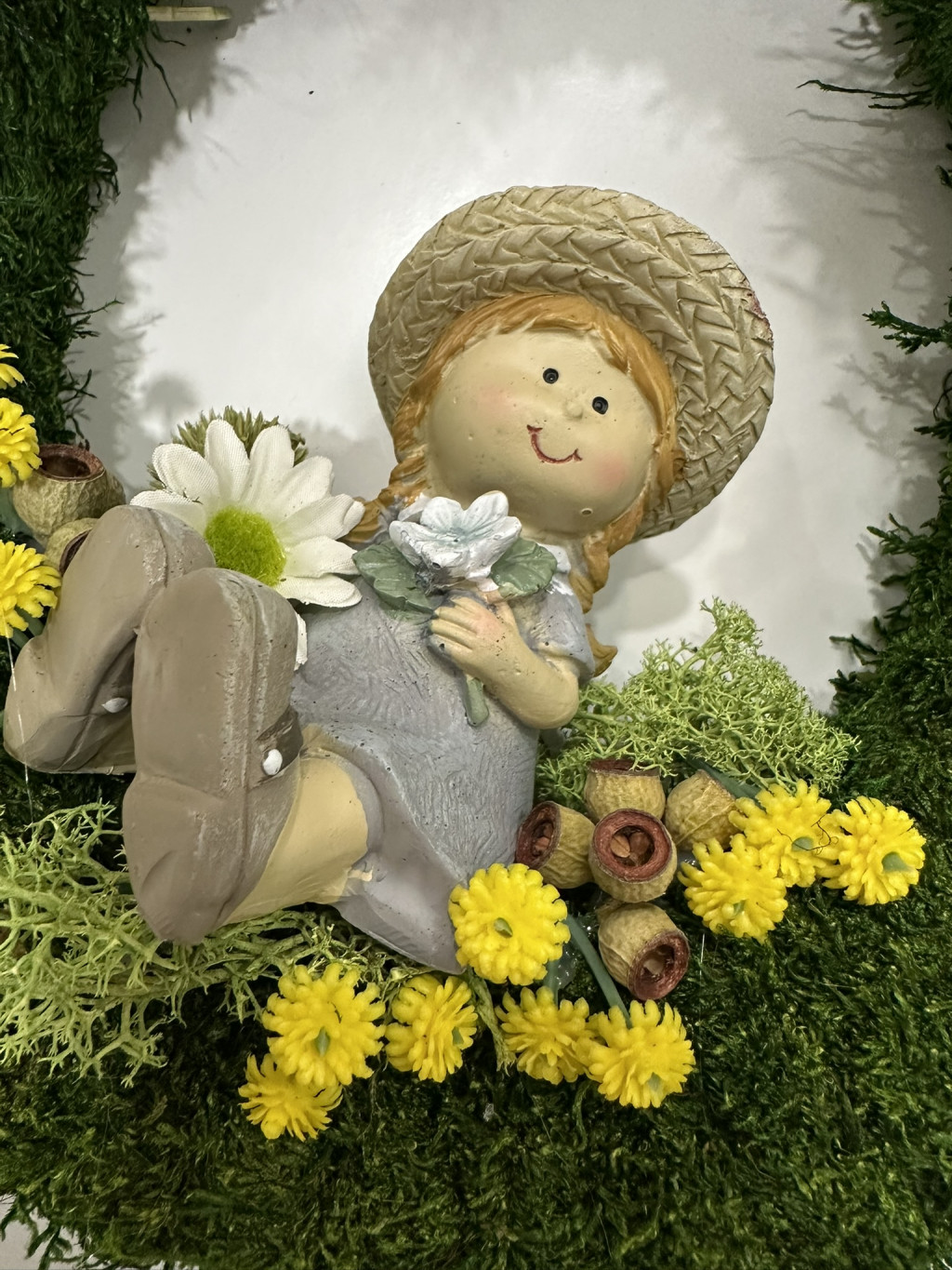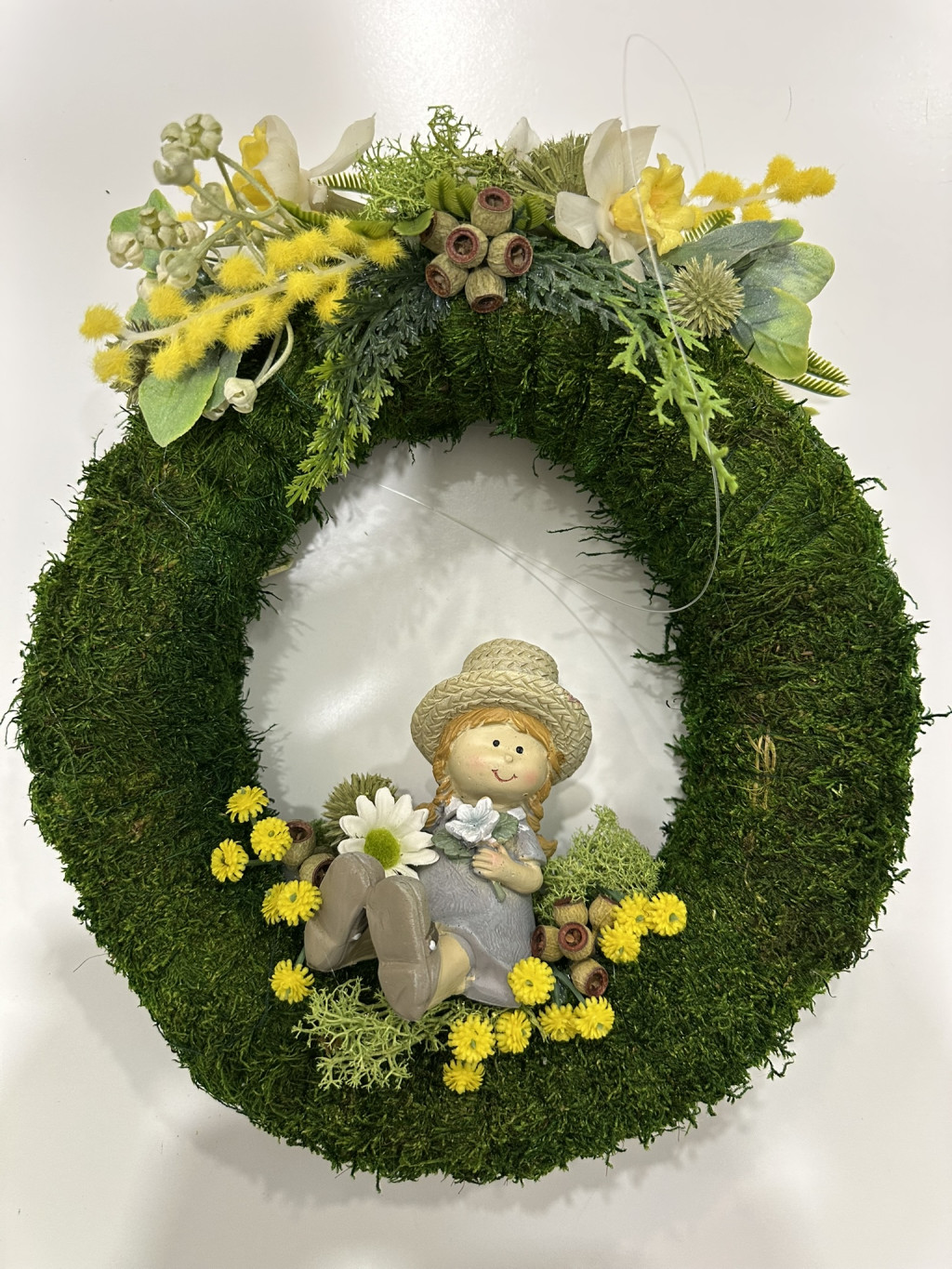 Ha szeretnéd, hogy otthonod már az ajtóban igazi tavaszi hangulattal fogadja az érkezőket, ez a különleges mohás tavaszi ajtódísz kislány figurával tökéletes választás.