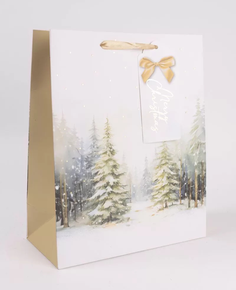 Dobd fel az ünnepi ajándékozást ezzel a gyönyörű Téli Erdő – Karácsonyi Ajándéktáskával (S méret)!