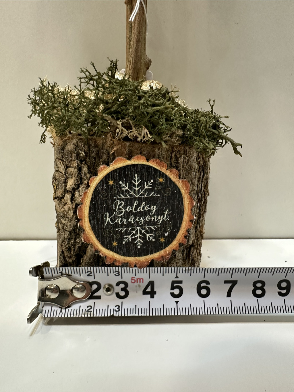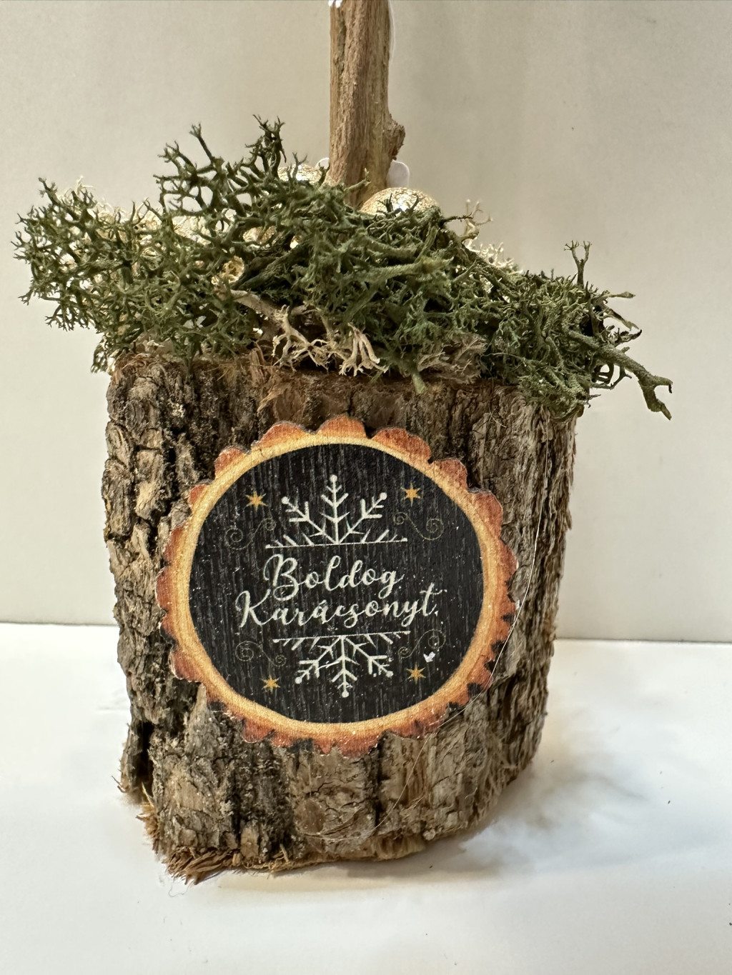 A fakéregből készült talpon egy kedves „Boldog Karácsonyt” fatábla található, amely tökéletes karácsonyi hangulatot áraszt — bármely lakásba, irodába vagy ajándéknak is kiváló választás.
